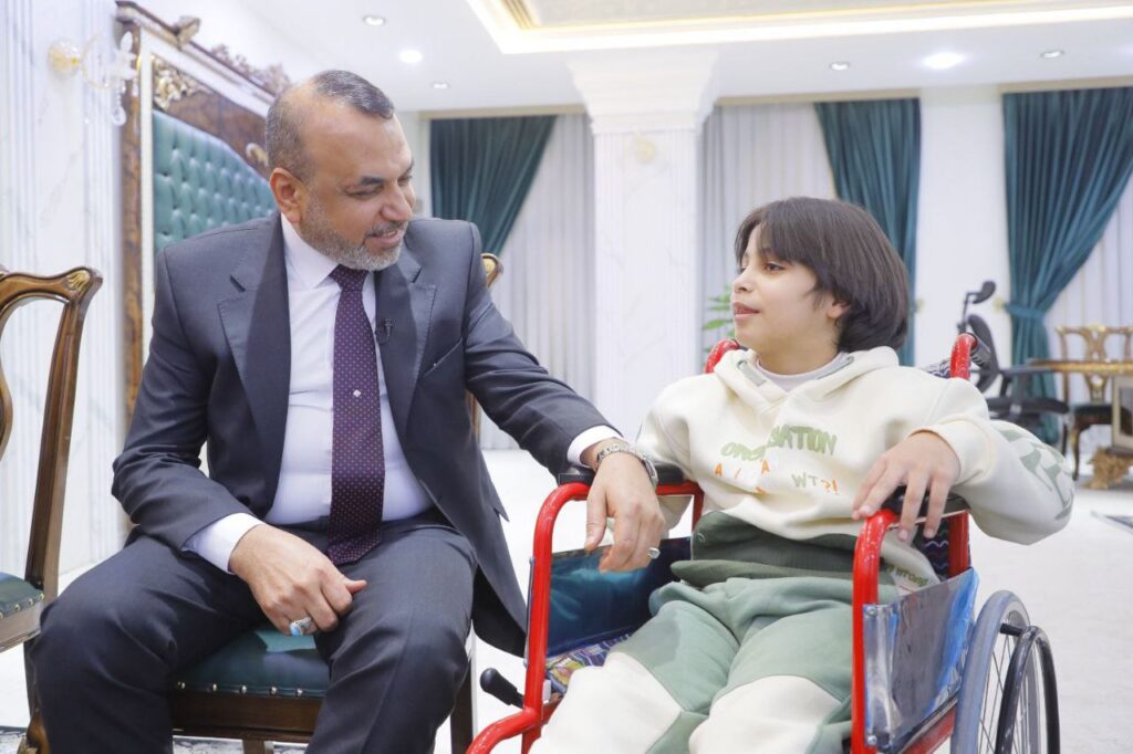 ووجّه الوزير بشمول الطفلة بالخدمات التي تقدمها وزارة العمل عبر هيئة حقوق ذوي الإعاقة، ومتابعة احتياجاتها الصحية والاجتماعية بما يضمن لها بيئة مناسبة للنمو والتعلم، مؤكداً أن الوزارة مستمرة في تقديم الدعم اللازم لجميع الحالات الإنسانية، فيما أوعز بتسليم الطفلة معيناً حركياً لتسهيل حركتها وممارسة حياتها اليومية.